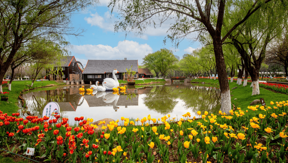 连云港灌云伊园:20万株郁金香竞相绽放,15个品种争奇斗艳,高铁、花海、风车构成童话场景,拍照超出片,盛花期持续一个月左右。