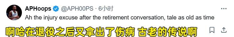 需要留意的是,詹姆斯在球队被淘汰后曝出伤病也引发美国球迷的争相质疑。
