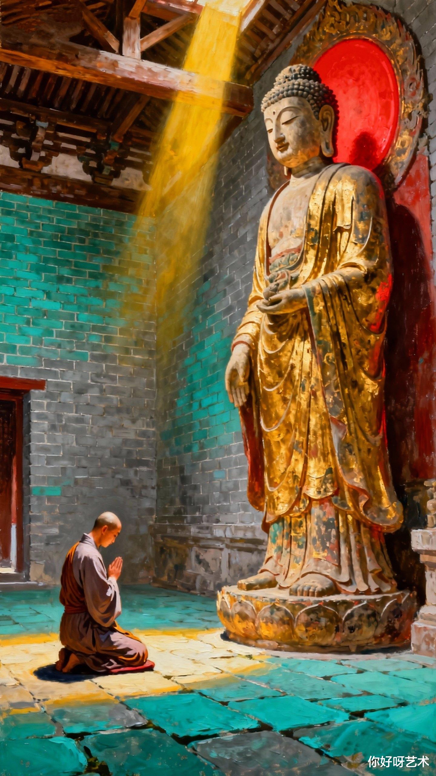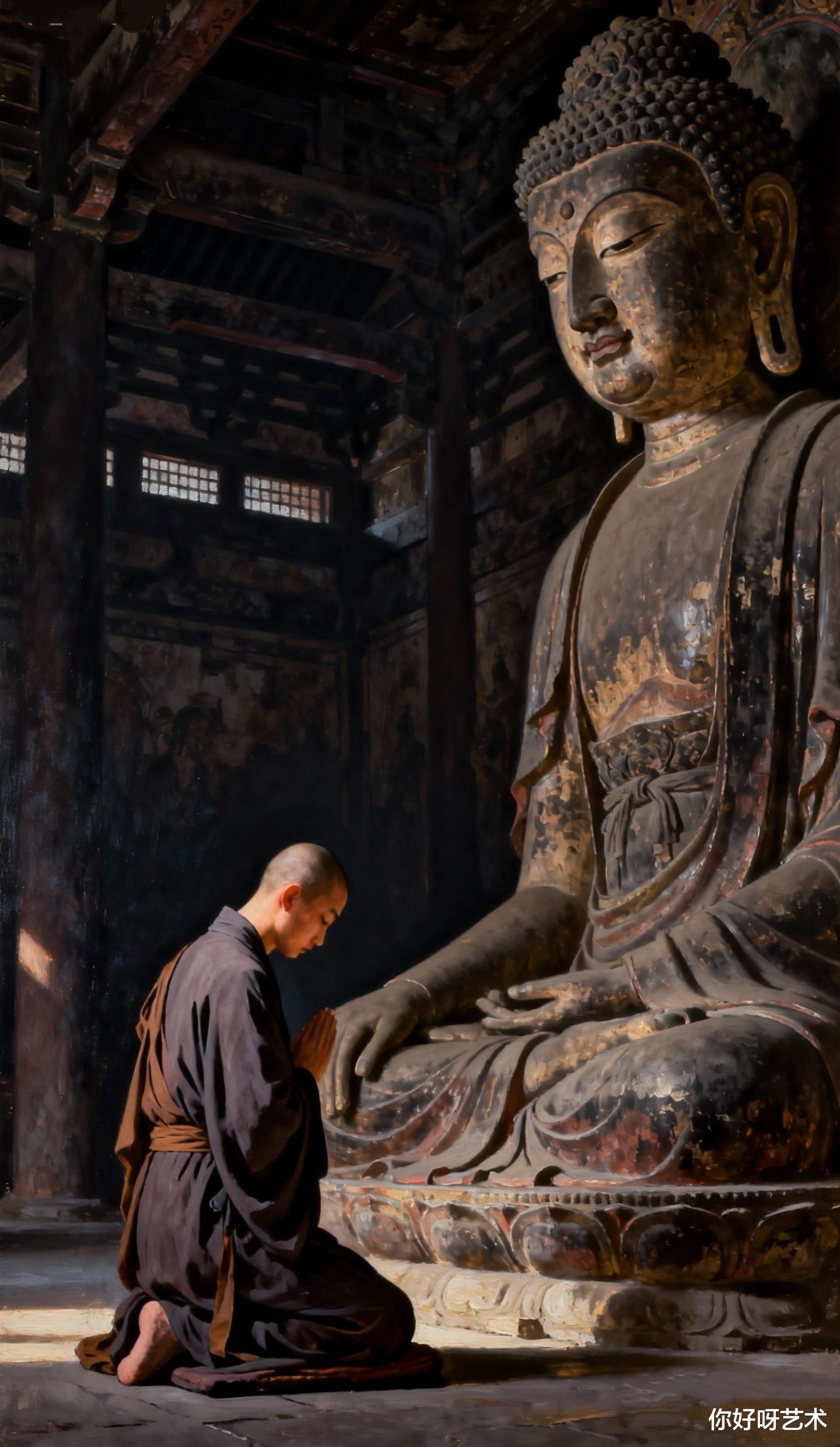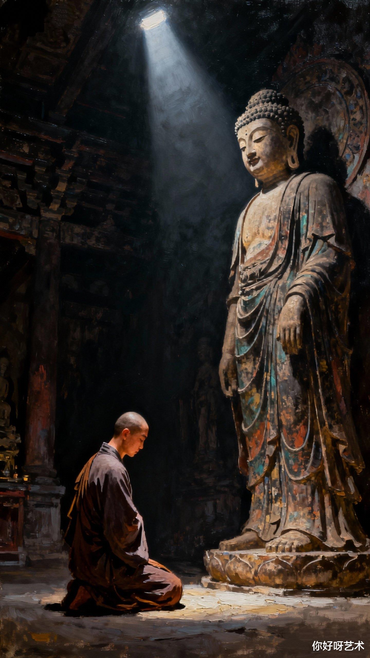 从历史文化的角度来看,这幅油画也有着深刻的内涵。西藏的佛像艺术有着悠久的历史,它是佛教文化在这片土地上传承与发展的重要见证。画家将佛像置于冰封的西藏背景之中,或许是在暗示着信仰在这片艰苦环境中的坚守与传承。在西藏的历史长河中,无论环境多么恶劣,人们对佛像所代表的佛教信仰始终怀着敬畏之心,这种信仰如同灯塔,照亮了人们的心灵,给予他们在艰难生活中前行的力量。