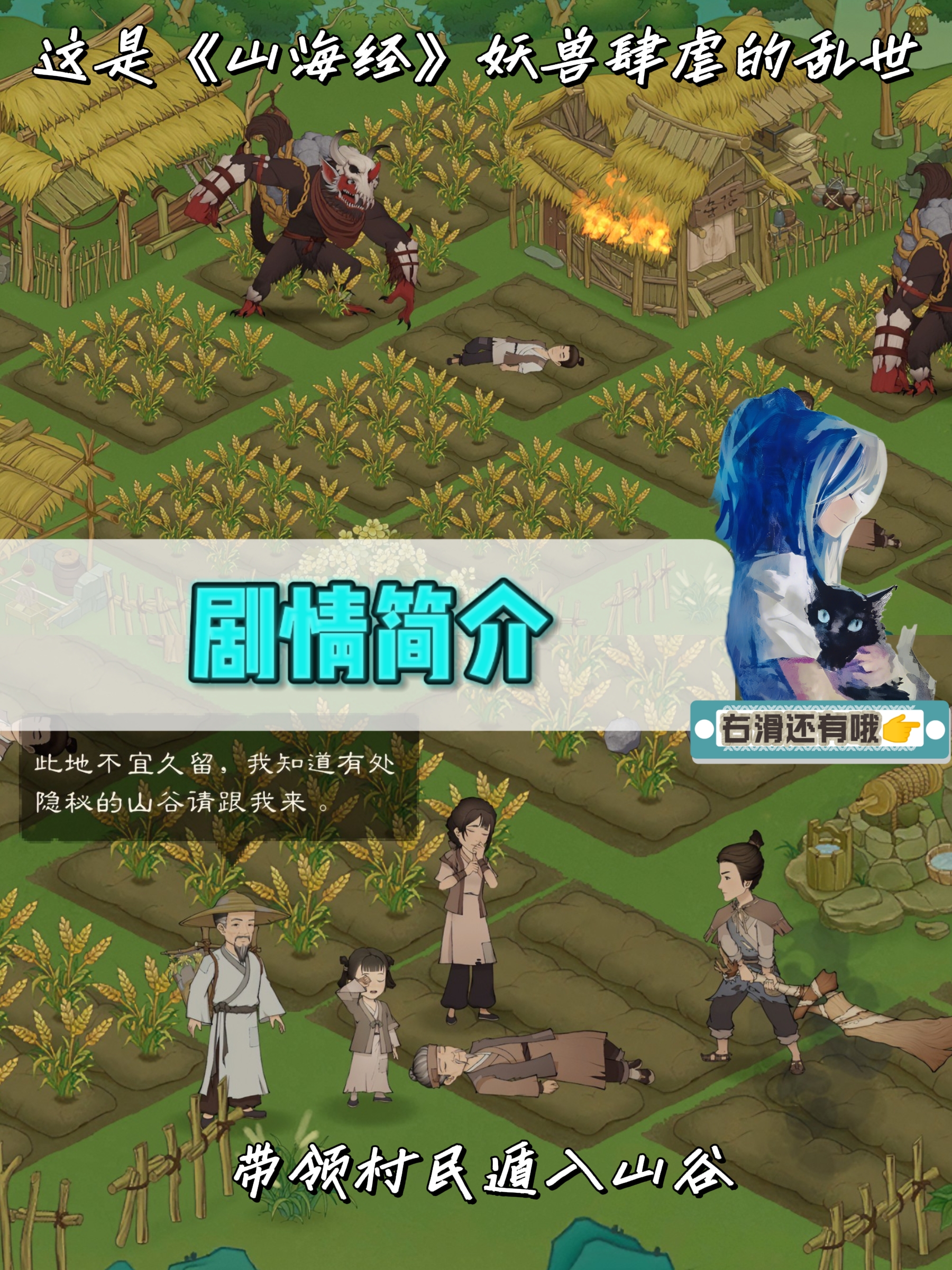 剧情简介:玩家将置身《山海经》妖兽肆虐的乱世,带领村民遁入山谷,从零开始拓荒求生。独创的“真实生存体验”:饥饿,灾病,寿命与四季天气交织成真实的生存体验。【水墨千年,沉浸盛唐山海】以陶渊明笔下桃源为魂,融《山海经》妖兽奇谭,重构盛唐与秘境的碰撞!四季轮转,剑门关秋叶如诗、伏牛山诡影暗藏、蓬莱云海似幻,每一帧皆可入画。【拓荒至境,策略与温情的交响】从零造梦:采集亚麻、驯养鸡群、开垦农田,用葛草织衣御寒,以兽皮制玩具换盐,步步为营打造世外村落。