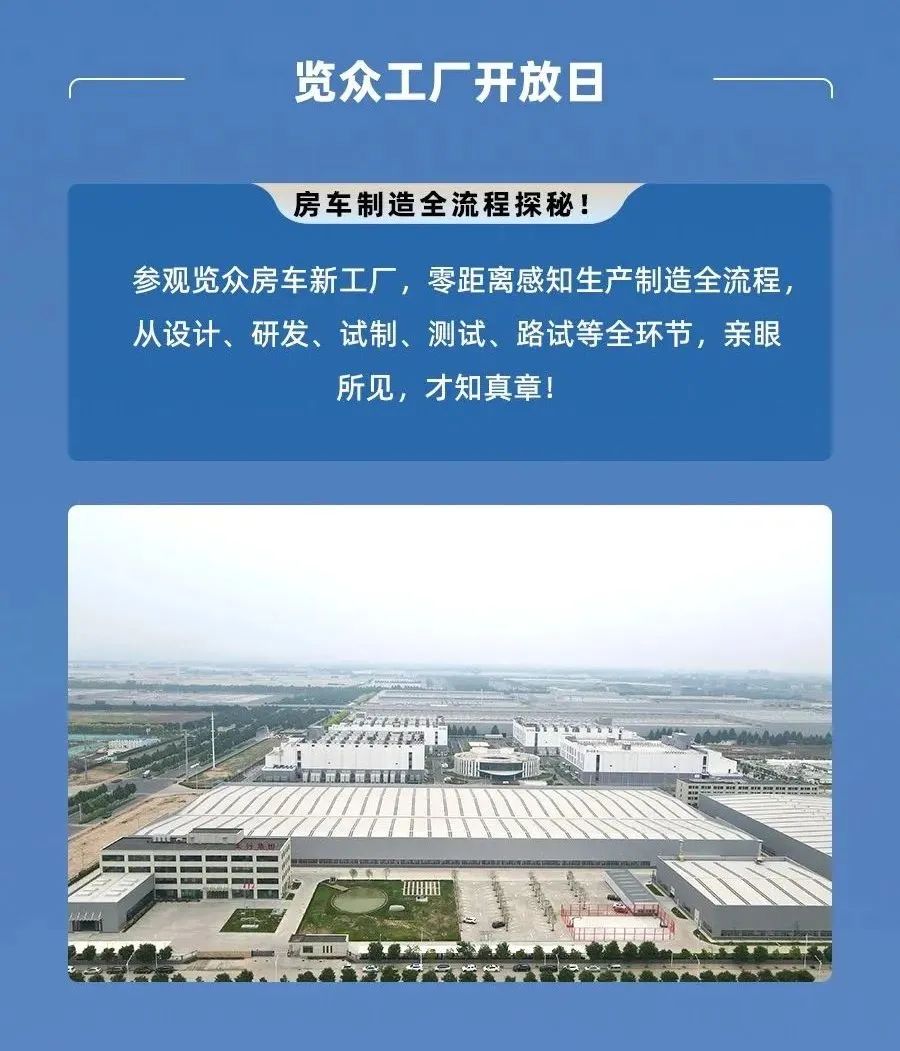 活动地点:河北省保定市徐水区长城汽车工业园区5129号活动一:览众工厂开放日览众房车首个工厂开放日即将开启(搬迁徐水新工厂后首次开放参观)。26年品牌积淀,探秘新工厂,零距离感受新车制造全流程。