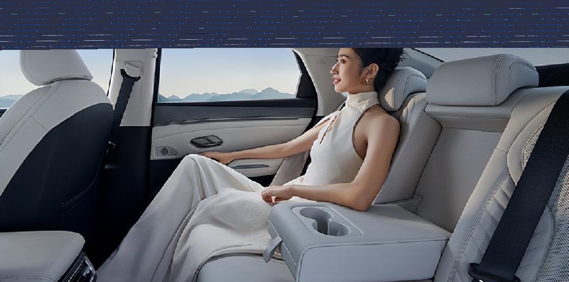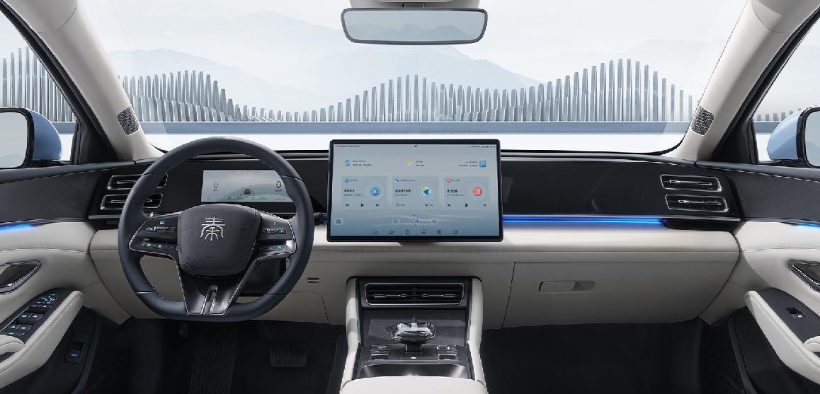 谈到设计,秦L DM-i同样不让人失望。车身的冰珀青色车漆,复刻了宋代官窑的经典风韵,平滑的线条在阳光下闪着光辉,尽显高端与时尚。内饰方面,设计灵感则来源于《千里江山图》,即使是最普通的出风口也都呈现出优雅的山峦造型,给人以视觉与触觉的双重享受。而后排空间几近“平地”,无论多高的人坐在后排都能轻松舒适,这无疑提升了整体的乘车体验。