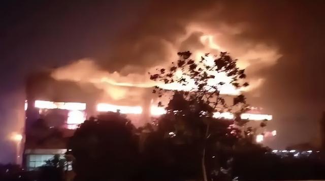 从视频中看到,夜空被火光照亮,仓库的结构在烈火中逐渐被吞噬,不少人从视频中看出火势一路蔓延到整个园区,无锡市的消防队员很快出动,现场动用了多辆消防车,努力从各个方位控制火势。