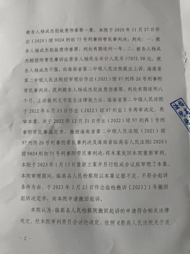 2020年一审判决如同重磅炸弹:古稀老人获刑1年!二审虽减刑至8个月,但仍认定"后续追砍超出防卫必要"。戏剧性转折发生在2023年再审阶段,检察机关突然撤诉并重新定性:1️⃣ 年龄悬殊:70岁VS38岁,力量对比悬殊2️⃣ 情境代入:面对持续威胁,连续挥刀符合应激反应3️⃣ 心理机制:恐慌情绪下难以精准控制防卫力度"看到检察机关用'符合常人心理'来论证,我眼泪刷地下来了。"杨成杰儿子接受采访时哽咽道。这份迟来的正义,让"昆山龙哥案"后全民关注的正当防卫认定标准再成焦点。