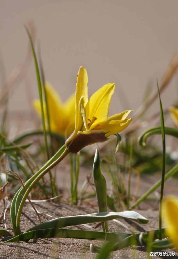 和那些经过人工培育的园艺郁金香不同,蒙古郁金香是纯粹的野生种,是大自然选择的结果。园艺品种追求的是花更大、色更多、形更美;而蒙古郁金香则保持着原始样貌,形态娇小,花色是单一却鲜亮的明黄,展现的是一种野性而简约的美。