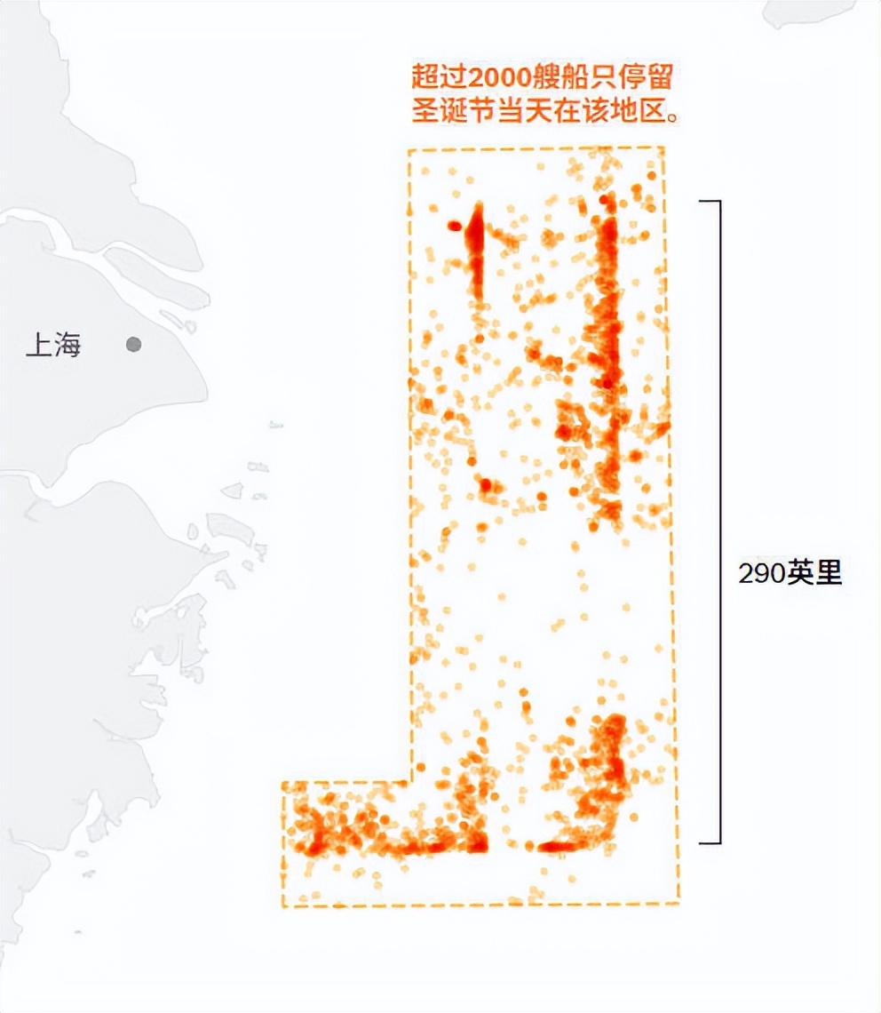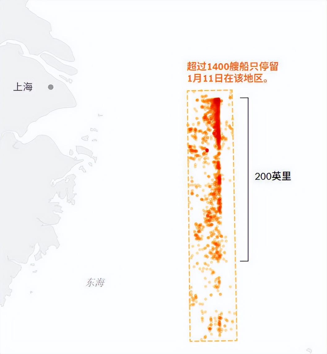 第一次,数据收集是在去年美国圣诞节期间,美国发现中国约2000艘渔船在东海组成两个平行的长阵型,每个阵型长约467公里,形成一个反L形。