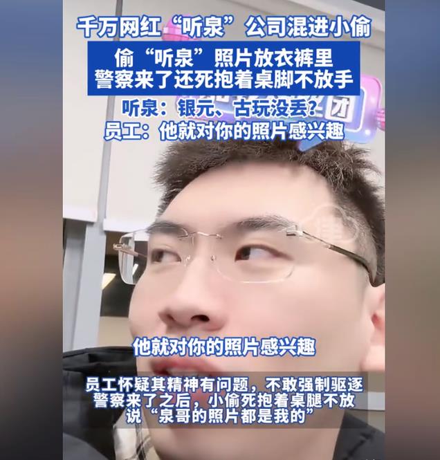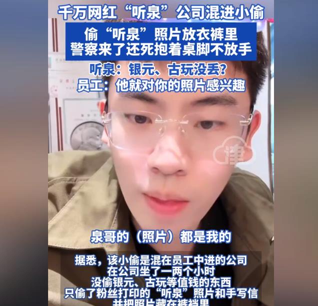 听泉公司混进小偷,只偷听泉照片放衣裤里