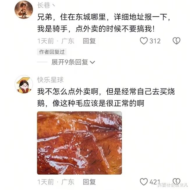 而另一部分网友则认为,烧鹅肉上的毛发似乎在他们看来并不算太严重,认为这样的情况在传统烧鹅中是常有的事。