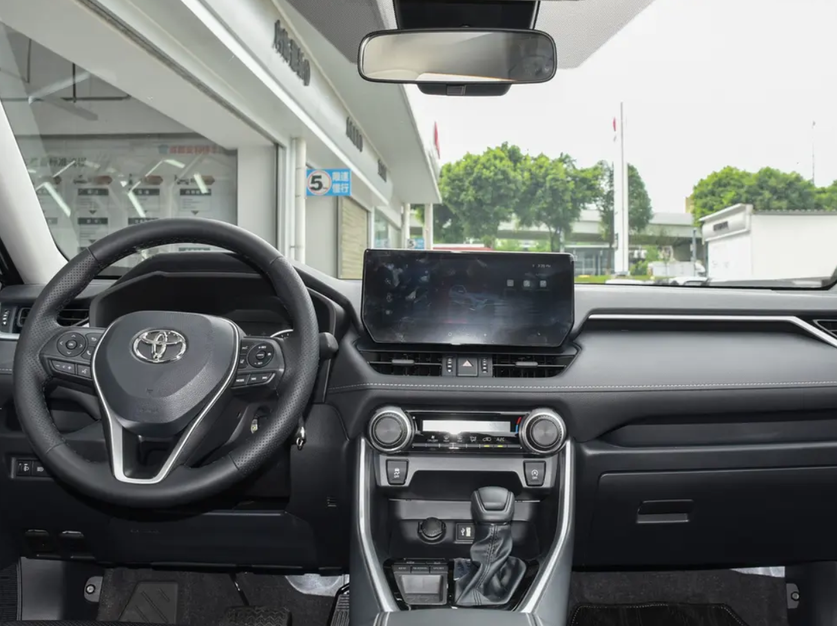 来到内饰,丰田RAV4荣放也是延续丰田家族的风格,虽然第一眼感觉和老款没区别,但在细节上也有改善,看起来会更精致,摸起来档次感也会多些。比如像中控台前排就做软包加缝线的处理,在车门等地方也有双缝线工艺,部分饰板也采用烤漆材质,用料虽然不多但视觉效果优化明显。而我最喜欢的设计就保留许多实体按键,我觉得还是机械素质越高越靠谱。比如像空调旋钮使用起来就方便很多,还有经典的电子档把也符合老司机的手感。标配有多功能方向盘,4.2英寸或7英寸液晶仪表,中控屏幕为10.25英寸,虽然车机系统的APP不够丰富,但在稳定性和流畅性方面表现出色。一些应用程序还支持语音控制。而且移动设备上也支持CarPlay、CarLife、HiCar,进一步增强可玩性。