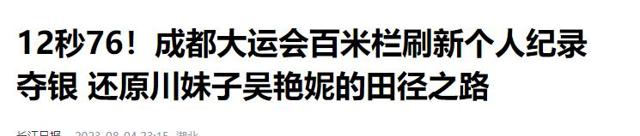 信息来源:长江日报——12秒76!成都大运会百米栏刷新个人纪录夺银 还原川妹子吴艳妮的田径之路