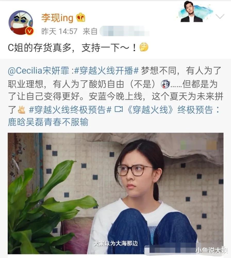 除此之外,李现还曾公开打卡宋妍霏过,支持宋妍霏。