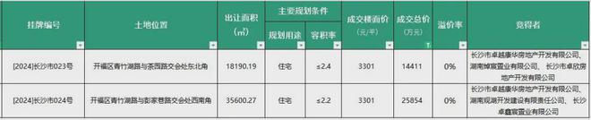另一宗地,则距离地铁6号线韶光站约300米,出让面积26198.53万方,容积率2.5,建面约6.55万方,由长沙翼腾房地产拍下,折合楼面价3700元/平。