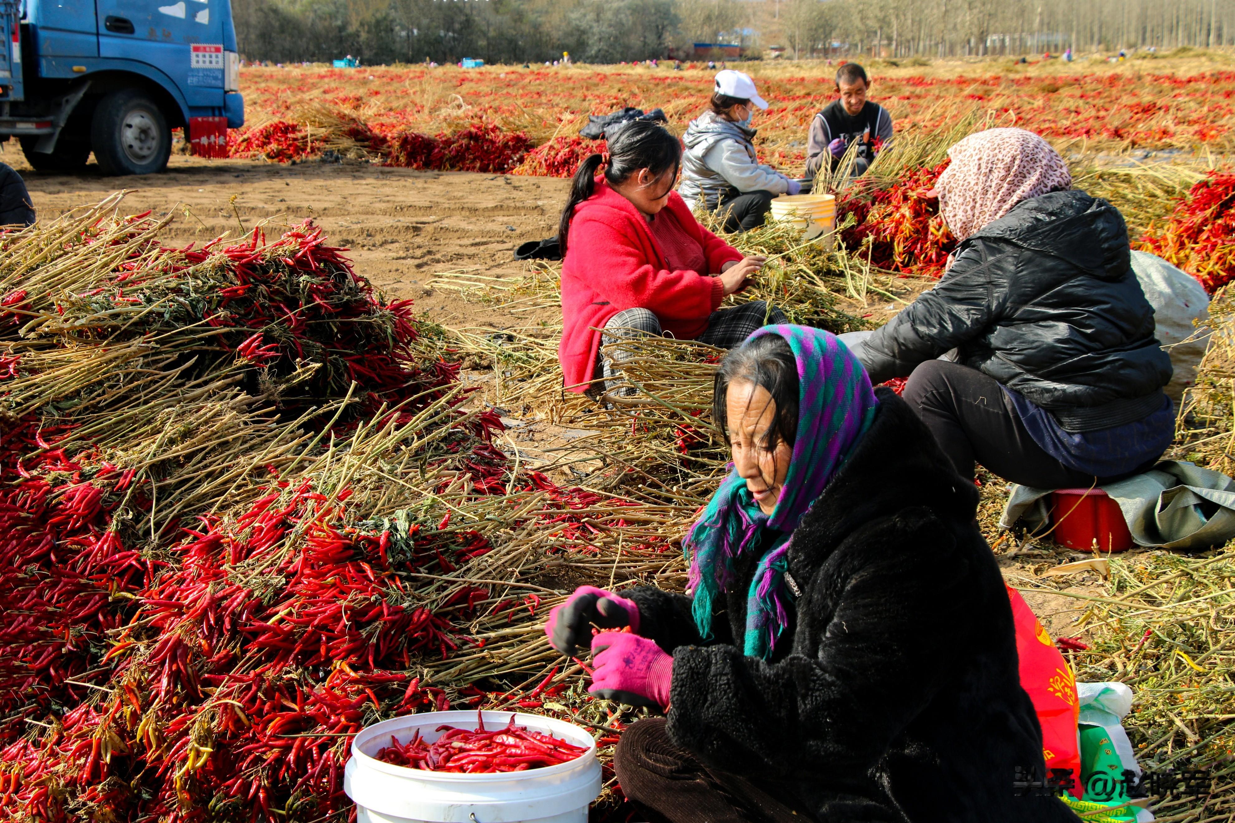 即将霜降,季节不等人——第二次拍摄后的第三天,又接到村支书的消息,“机械化收割是指望不上了,重新调试的收割机仍然不好用,收不净并损坏辣椒,明天开始人工收割”。