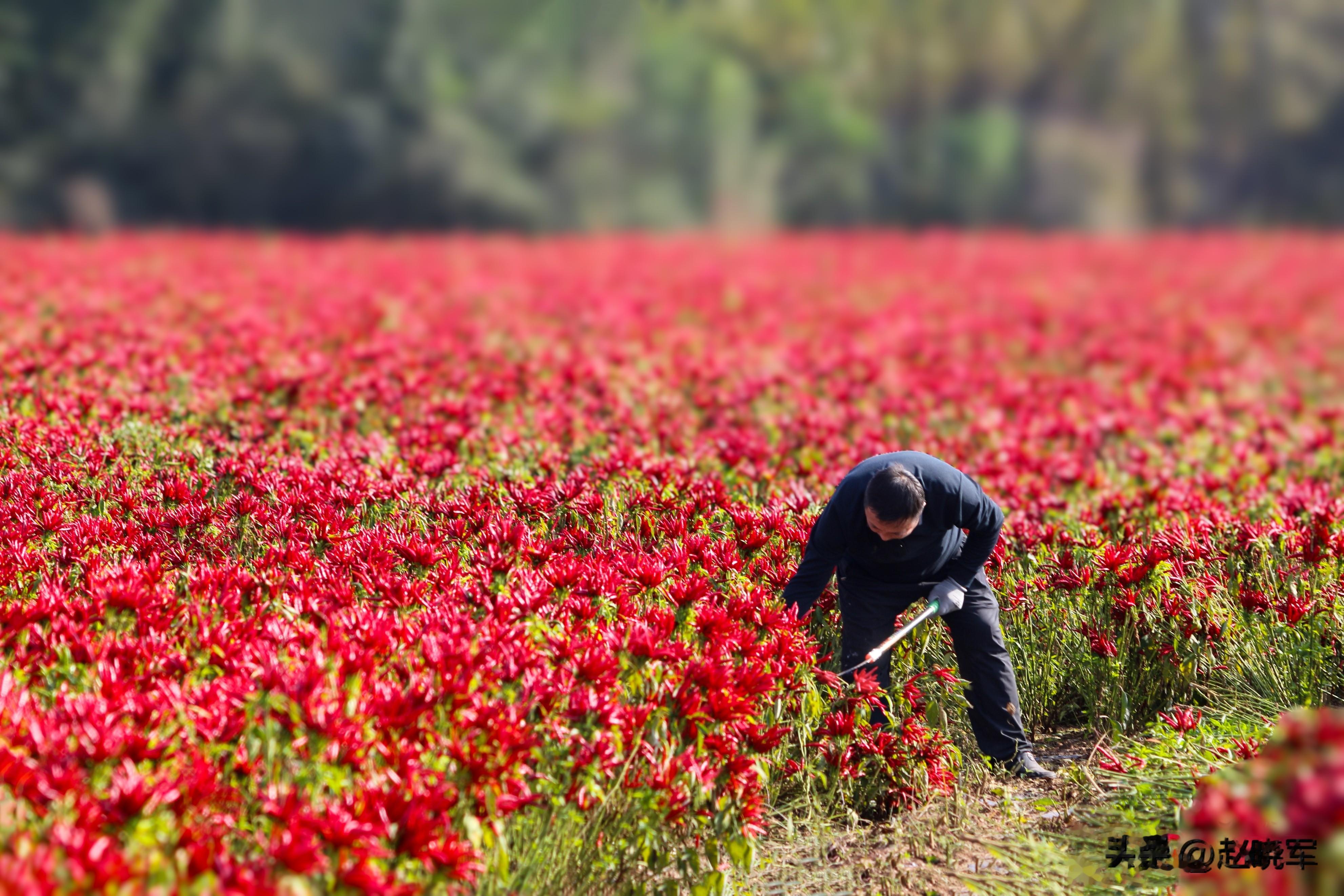 可到家不久,就接到摄友电话:这朝天椒的规模十分罕见,收割时肯定同样壮观,晾晒时更是红红火火,我还负责出车,您还负责联系,咱们至少还得去拍摄几次。