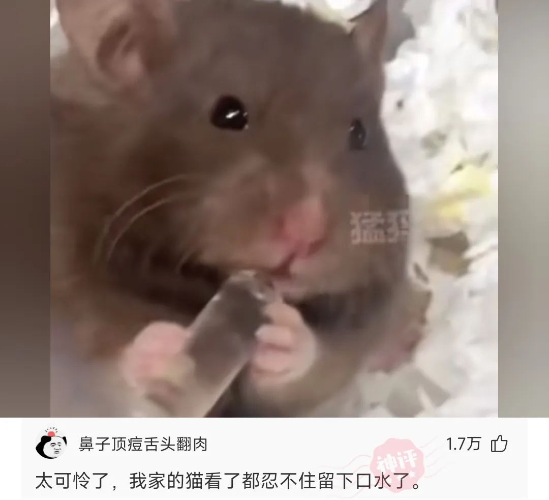 6、主人嫌仓鼠晚上喝水声太吵,第二天睡醒后才给它喝水,仓鼠满脸委屈:你的心是铁做的吗?