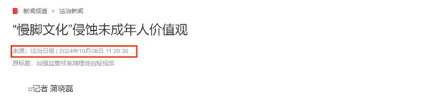 信息来源:法制日报《“慢脚文化”侵蚀未成年人价值观》