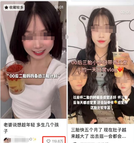 为了博取观众的视线,这群人通常会在标题中写上自己的年龄,而封面则会设置成自己的孕肚或者和刚出生孩子的合照。