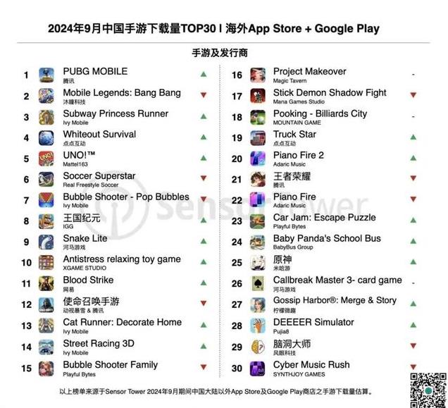 其中,《PUBGM》于重新登上手游出海榜第一的宝座,得益于埃及主题、兰博基尼等优质装扮的拉动,游戏第三季度营收同比增长百分比达到两位数,实现游戏流水的历史新高。