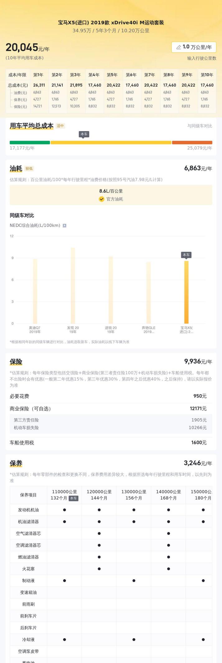 第三,用车成本。豪华车的用车成本普遍较高,宝马X5也不例外。除了油费之外,每年的保养费用、保险费用也是一笔不小的开支。根据一些汽车网站的数据,宝马X5每年的用车成本大约在2万元左右,这对于一些预算有限的消费者来说可能是一个不小的负担。