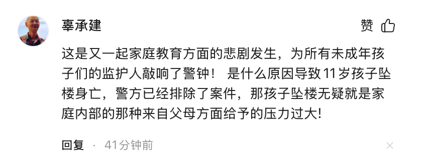 不少网友也在评论中指出家长监护责任的缺失,诸如 “家长怎么没看好孩子呢?11 岁的孩子还需要时刻关注啊” 这类声音,反映出社会上部分人对家长监护责任的普遍看法。