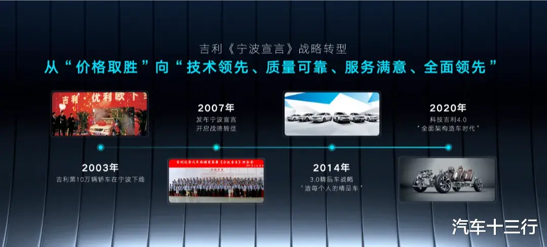 到今天,人们对吉利并购沃尔沃的成功,都没有一个清晰的认知,认为是天时地利人和的运气。错了!吉利并购沃尔沃的成功,其实早在2007年就已经基本能预见到成功的曙光了。2007年,在所有中国车企像今天一样,沉醉在低质低价的价格战时,吉利控股集团董事长李书福提出《宁波宣言》,要求造老百姓买得起的精品车。精品二字,意味着吉利从此以后,不再做敲敲打打逆向开发的造车作坊了,而是要和世界车企同台竞争掰手腕。