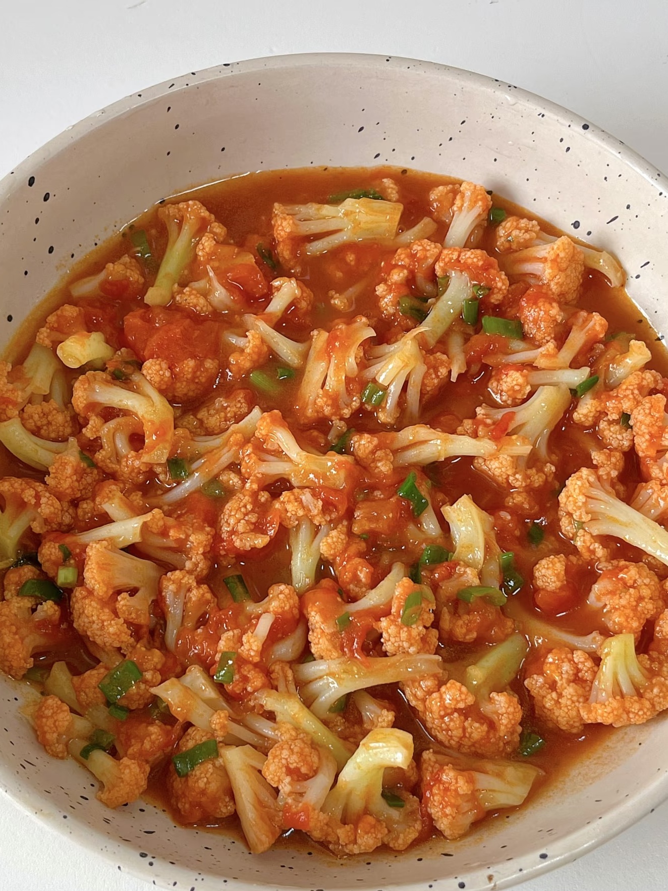 ① 番茄要炒到“化汁”再下花菜,否则裹味不均。② 花菜别炒超1分钟,脆爽是灵魂。③ 酱汁含盐,最后尝味再补盐,避免过咸。