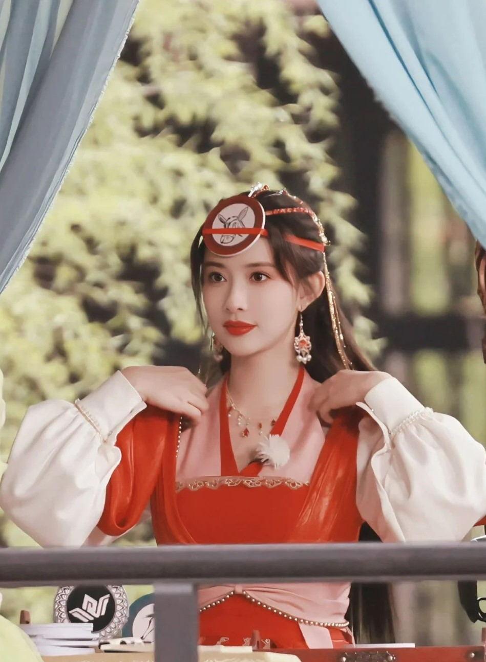 孟子义的角色是楼兰公主,充满异域风的红色系长裙搭配同色调额饰,主打一个美艳大气。造型美哭了谁我不说,古装剧赶紧接起来吧孟姐!