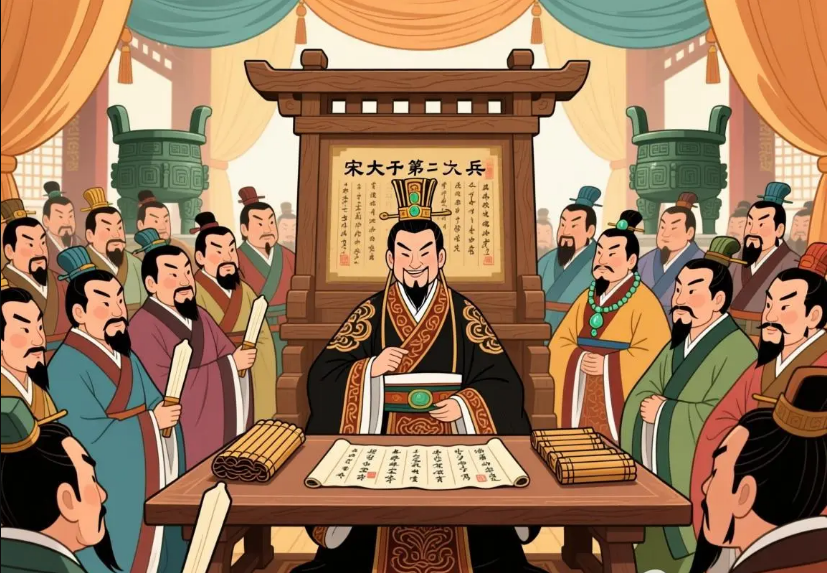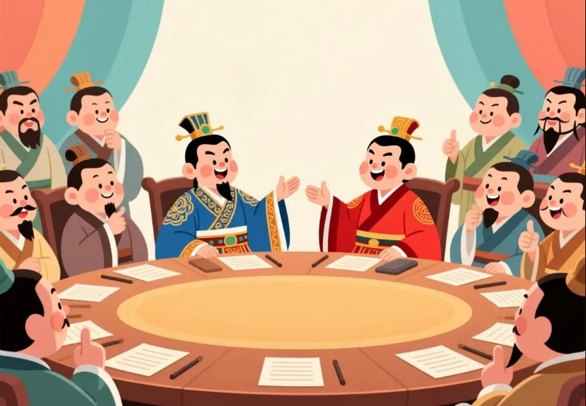 条件都商量好了,马上就要歃血订盟了,楚国的屈建又找向戌说:“两个盟主,总得有个先后吧?你去跟晋国谈谈,歃血时,楚国得在前头。”向戌很为难,可他是发起人,只好去找晋国的赵武。赵武不同意,他说:“我们先君文公最早当了盟主,楚国怎么可以在我们的前头呢?”向戌把这话又传给屈建。屈建说:“大家都说晋楚是平等的霸主,如果老是晋国在前,无形中我们楚国不就等于是第二位了吗?这次说什么也得让楚国在前头!”其实,来开会的楚国人早就做好了准备,他们衣服里边都穿着铠甲,藏有兵器,文的不行,就来武的,想在会上杀死赵武,独任这次会盟的霸主,接着就可以称霸天下。赵武见势不妙,只好让步,由楚国主盟。