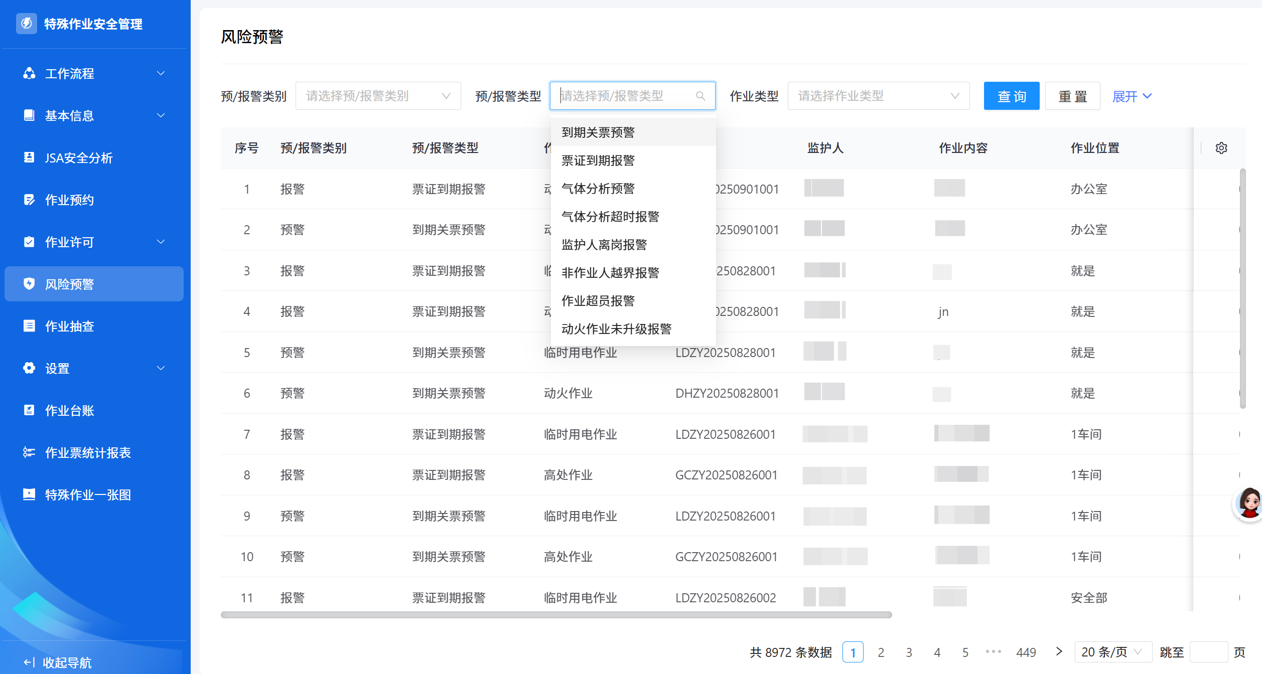 覆盖8大核心校验:作业时效、人员/监护人证书、培训结果、风险辨识、作业级别自动提级、动火方式关联证书、联票智能关联、气体分析频次。漏填错填自动提醒,从源头规避违规。