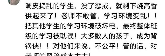 有的网友说:现在和我们80.90后上学的风气完全不同了,现在学生调皮捣蛋,老师也不敢管了,因为管的风险太大了,有被停职的风险。