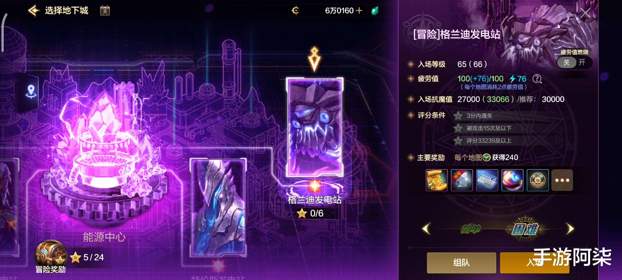 与之前副本分为普通、冒险、勇士不同,70级新增的6个副本分为简单与困难两种模式(类似65版本的普通、冒险),以格兰迪发电厂为例,简单模式入场抗魔仅需17500,困难模式入场抗魔则高达27000,相比简单模式抗魔门槛整整高了9500点,体验服实测下来,两种模式掉落的道具数量差不多,困难模式怪物血厚了不少,小号搬砖还是打简单模式划算。