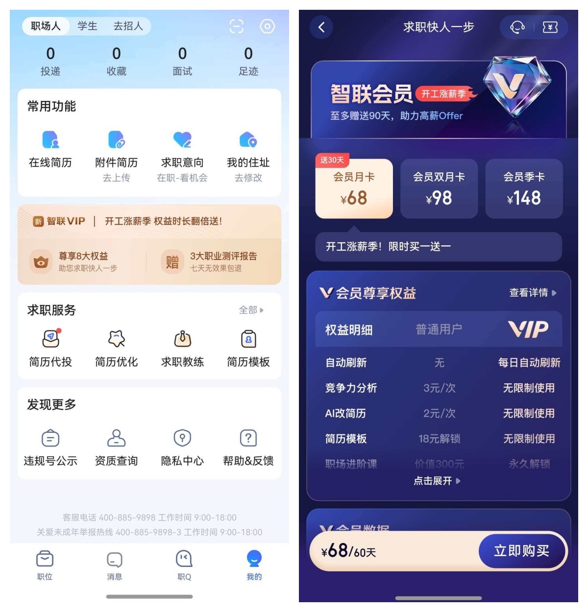 确定目标后,投简历也要讲究策略。如果你习惯用智联招聘或猎聘,现在正是薅福利的好时机——鸿蒙版智联招聘推出持续到三月底的“开工涨薪季”活动,职场端会员月卡、季卡统统买一送一;鸿蒙版猎聘的“新春开工,马上有礼”活动更是免费送860元新春求职礼包,有了这些福利加持,刷职位、改简历都快人一步,帮你高效斩获心仪offer。