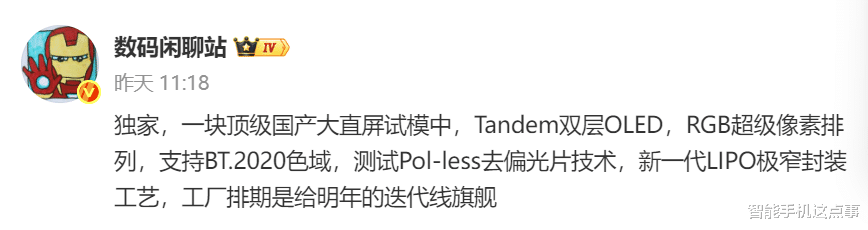 按照博主透露的信息,小米18 Pro Max的屏幕将实现技术性飞跃,或将成为业内首款同时集成 Tandem双层OLED、超级像素排列和Pol-less去偏光片技术 的顶级屏幕。
