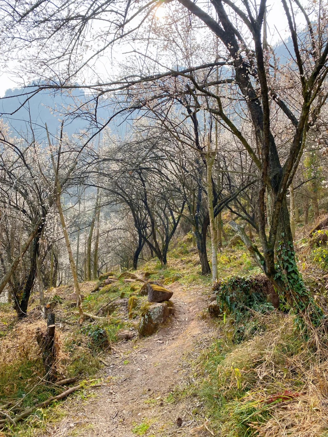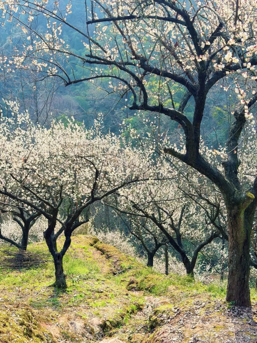 ✅ 满山白梅+粉梅,拍照绝美 ✅ 梅林下有大片野葱、清明蒿可摘