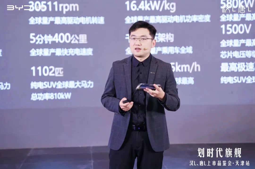 比亚迪王朝网唐系产品中心营销经理张宇飞先生,以专业的视角和深入的洞察,详细解读了汉L、唐L双旗舰车型的卓越性能、前沿设计以及智能科技配置。