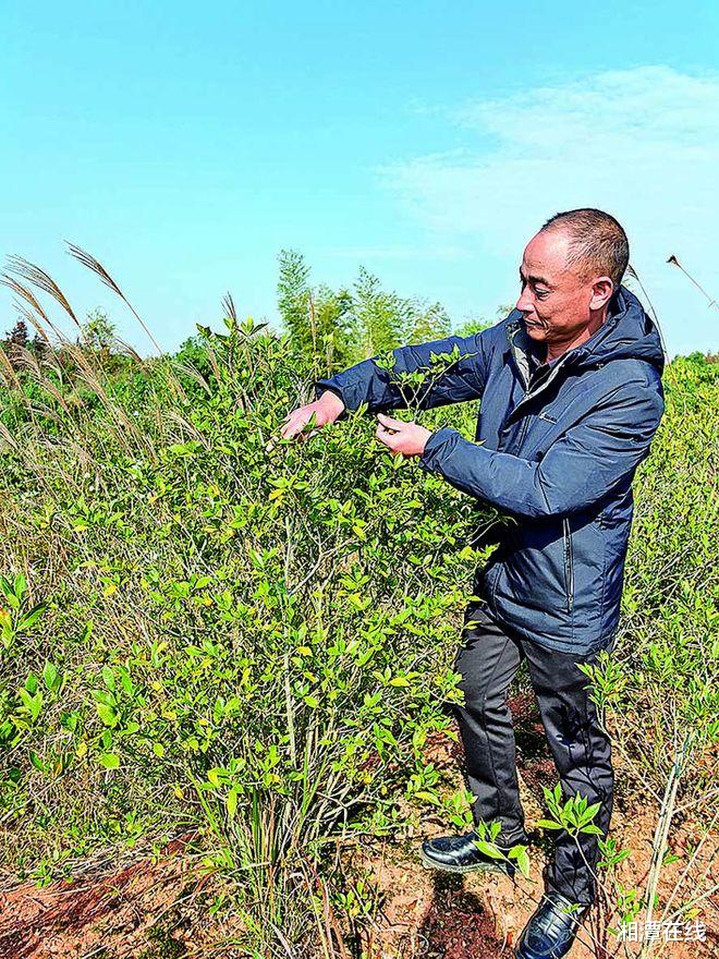 “黄栀子耐旱、好活,种下去两年就能小产,三年进入盛产期。”陈耀敏说起种植经如数家珍。但管理并不轻松,每年要清杂4次,施肥、治虫一样不能马虎。他的基地常年需要5到6人维护,还请了2名脱贫户,带动了本地就业。