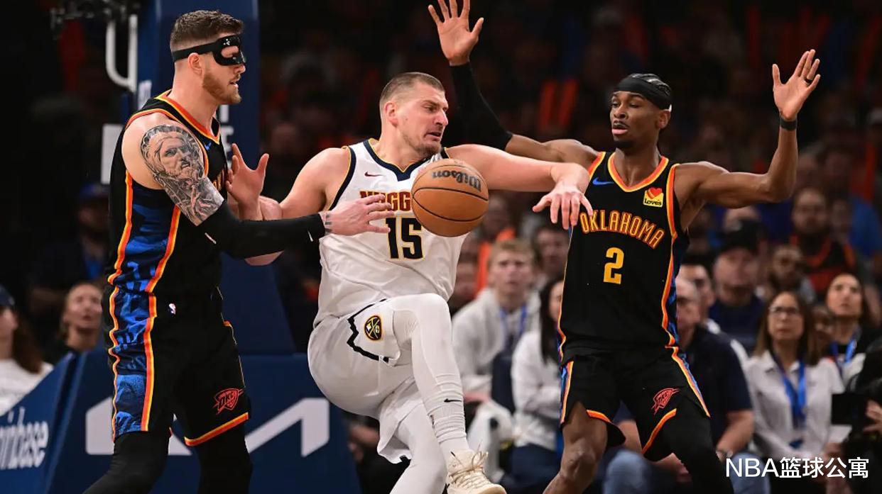 同时,约基奇的助攻和盖帽次数,也领跑全队。在约基奇的带领之下,掘金内线得分以54比46压制对手,篮板数据以63比43完胜雷霆,前场篮板也以21比13领先OKC。约基奇的5个前场篮板,高居全场第二,他的正负值高达+10。