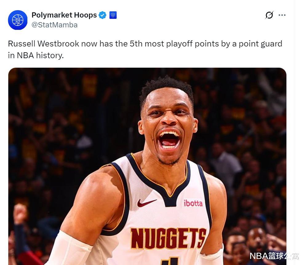 此役,威少还创下了纪录。此战之后,威少生涯季后赛总得分达到2984,超越保罗(2981),排名历史控卫第5位。