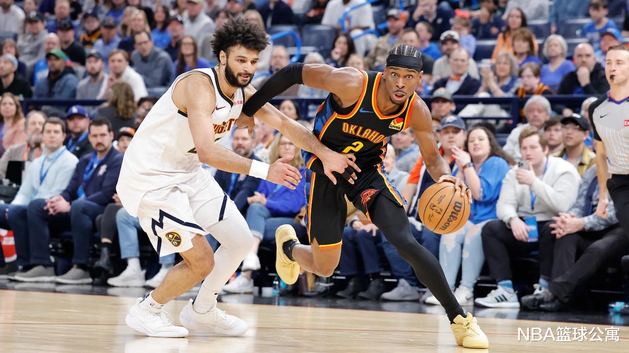戈登轰进三分球,亚历山大中距离得分,布劳恩拉杆上篮打进。约基奇单打多尔特肘击到对手后脑,随后被吹罚一级恶意犯规。多尔特2罚全中,霍姆格伦上篮得分,约基奇命中三分球还以颜色。穆雷2罚全中,亚历山大抢断,霍姆格伦扣篮不进,约基奇4罚2中,亚历山大跳投得分予以回应。穆雷与亚历山大在中远距离斗法,雷霆挑战判罚失败,约基奇2罚全中。