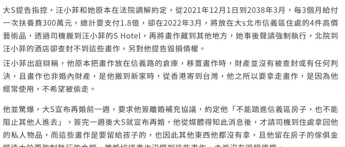 名画争议是这场纠纷的核心。汪小菲被指控拿走名画以规避强制执行,但他声称这些画是个人财产,离婚后取回私人物品。大S则认为,汪小菲通过购买艺术品管理财富,离婚后未明确名画去向,导致争议。检方调查结果显示,汪小菲取回私人物品无藏匿意图,财力充裕,不存在转移资产目的。
