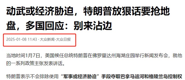 大众新闻-大众日报-2025.1.8《动武或经济胁迫,特朗普放狠话要抢地盘,多国回应:别来沾边》