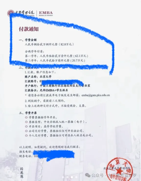 近日,有人晒出了北京大学光华管理学院录取通知书,人家叫“捷报”!而学费竟然需要82.8万元!读2年!