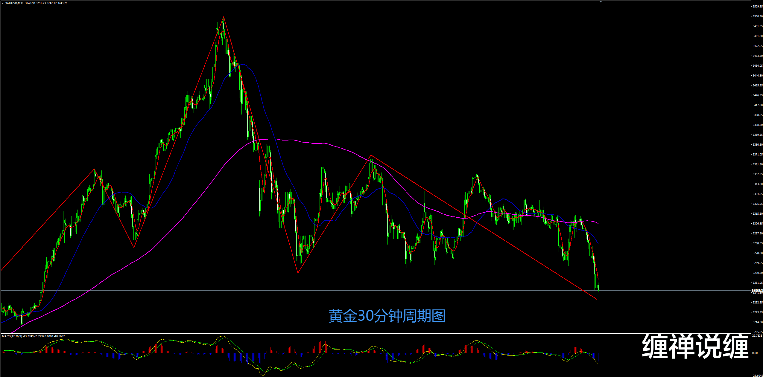 黄金30分钟结束了震荡,黄金最终向下跌破3259,黄金30分钟下跌延续,黄金反弹还是继续空,如果黄金继续跌破3235,那么好黄金30分钟下跌还将延续,黄金首先关注3267附近,如果黄金3267附近遇阻还是可以继续空,如果黄金突破3267,那么就要关注3300附近阻力再做考虑。黄金短线下跌延续,早盘反弹继续空!