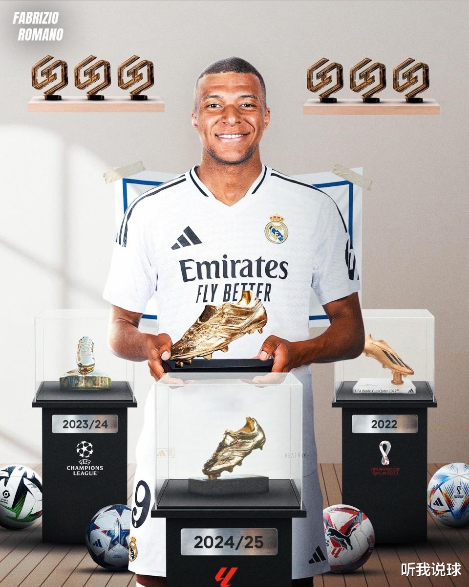 皇马球星姆巴佩以31粒联赛进球包揽西甲金靴与欧洲金靴,成为皇马队史第14位获西甲金靴的球员,延续了 “银河战舰” 的射手荣耀 —— 从迪斯蒂法诺(5次)、普斯卡什(4次)到 C 罗(3次)、本泽马(1次),姆巴佩的名字正式写入皇马传奇射手榜单。
