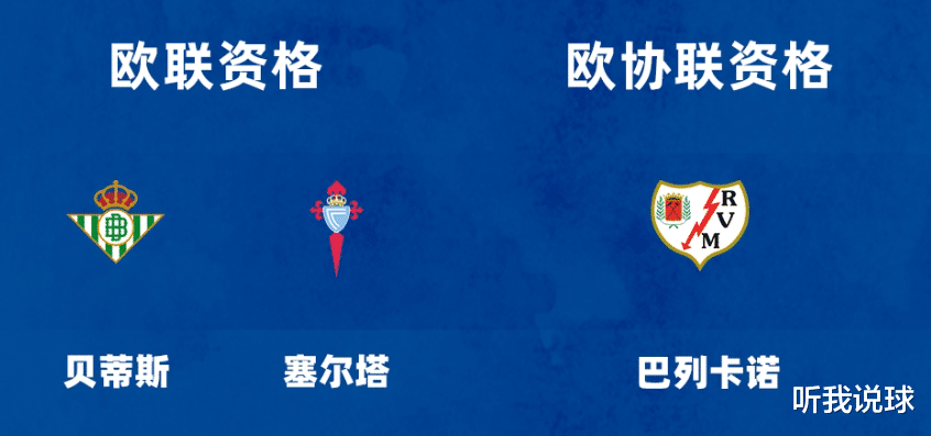 贝蒂斯、塞尔塔拿下欧联席位,巴列卡诺获得欧会杯附加赛资格。值得关注的是,若贝蒂斯斩获欧协联冠军,排名第9的奥萨苏纳将递补获得欧战资格。
