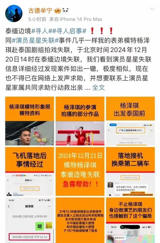 从杨泽琪表姐发布的求助内容上来看,他被骗走的经历与王星惊人的相似,对方都是使用了同一个套路,那就是招聘演员去泰国拍戏。