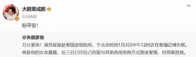 失联的演员王星被成功找到并解救了出来,目前泰国方面已确认他是受害者,他马上就可以和去接他的女友安全回国了。