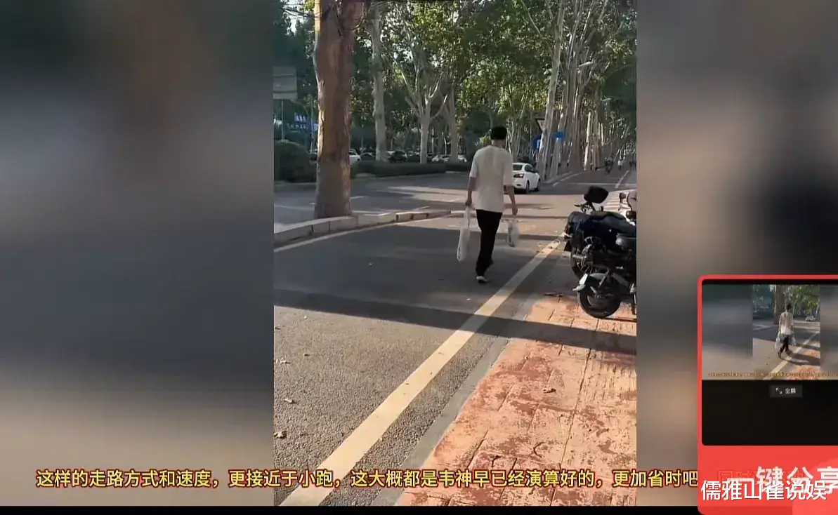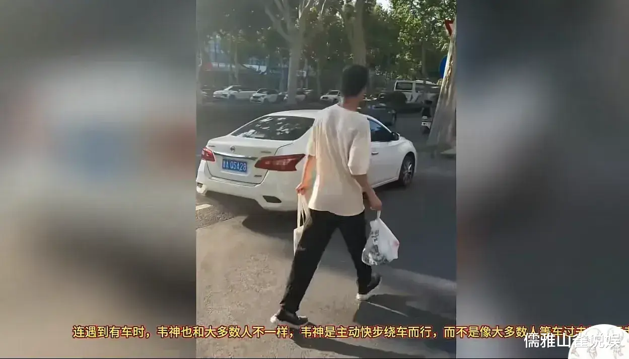 路人乙定睛一看,惊呼道:"天哪!那不是'韦神'吗?他怎么一个人走路啊?"