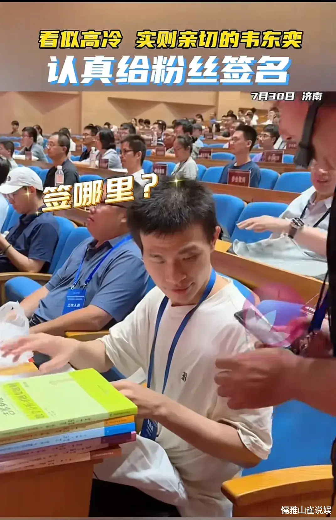 年轻人有些失望,但又不敢多说什么。这时,韦东奕从包里拿出一支笔:"不过,我可以给你签个名。"