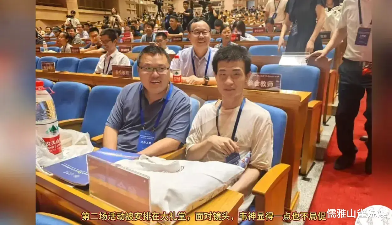 进入会场后,韦东奕的形象与其他与会者形成了鲜明对比。其他人大多西装革履,而他仍然是那身朴素的打扮。但当他一开口,所有人都被他的学识所折服。